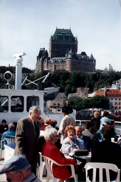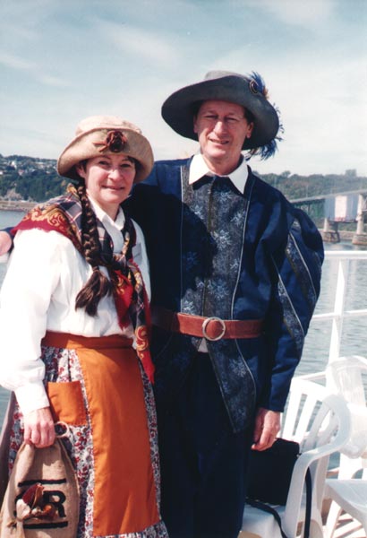 Qui n'a pas rêvé de rencontrer Champlain accompagné d'une demoiselle du XVIIe siècle? Ceux et celles qui sont venus aux fêtes du 325e anniversaire de l'arrivée de nos ancêtres le 16 septembre 1995 ont eu cette chance! Peut-être René de Cap-Rouge et Catherine de L'Ancienne-Lorette y étaient-ils pour quelque chose?... Après une messe à l'église de L'Ancienne-Lorette, plusieurs participants se sont dirigés vers le Vieux-Port où ils ont pu faire une croisière inoubliable sur le Saint-André jusqu'aux Chutes Montmorency et l'Île d'Orléans. D'autres participants se sont rendus au Parc Robitaille pour y déposer une gerbe de fleurs en hommage aux familles Robitaille.
